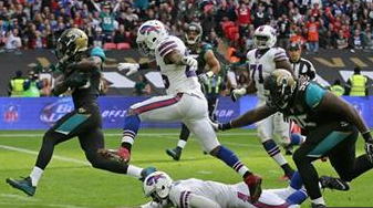 14) Bills-Jaguars: BUF in white/white, JAX in black/black. Played in London, the first fully webcasted NFL game (thanks, Yahoo!) ever features all white vs. all black. All not so right. Coulda looked a lot better with the Bills in blue pants and the Jags in either teal jerseys and/or white pants.